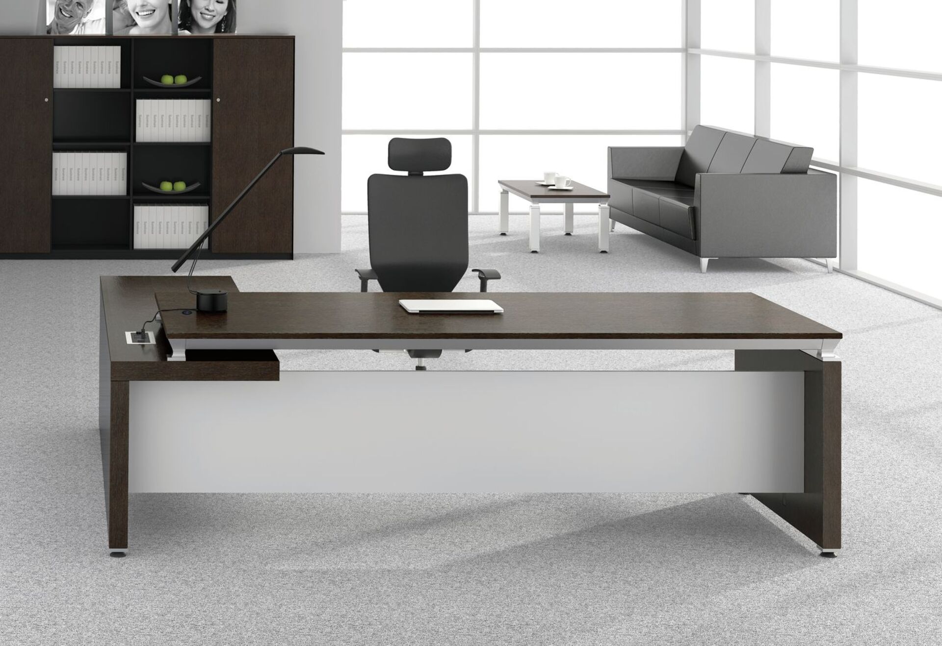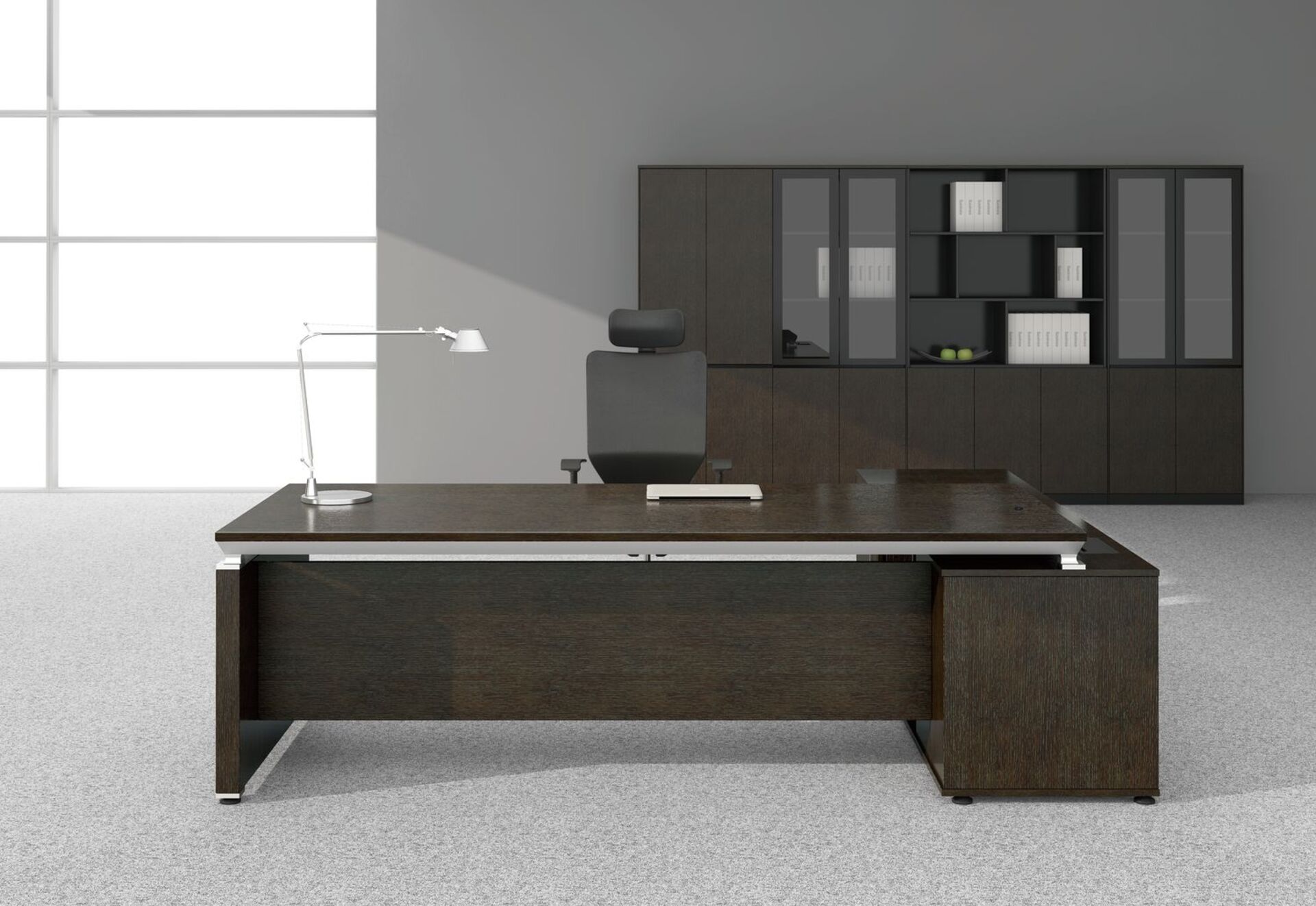 Кабинет директора Easy от производителя SUNON – это набор высококачественной мебели для оснащения офисов премиального класса. Меблировка выглядит стильно, строго и очень эффектно, во многом определяя успешность проводимых деловых переговоров, встреч, положительно влияет на имидж компании. Основные черты – четкая геометрия, лаконичность линий, а также темные оттенки, идеально соответствующие принципам классического интерьерного дизайна.
