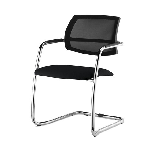 URBAN-MESH Кресло полозья,кожа ЧЕРНЫЙ/ХРОМ Urban Mesh slide Dakota black