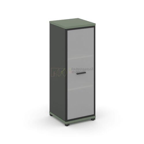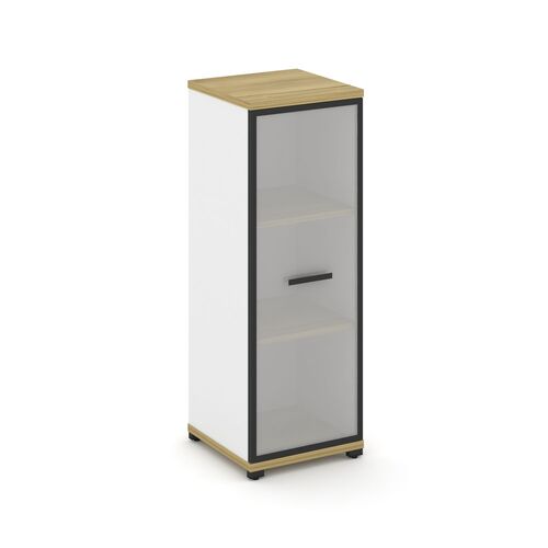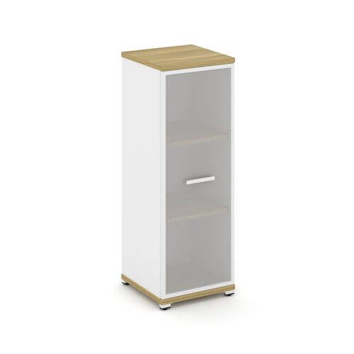 Шкаф высокий узкий левый (1 низкий фасад ЛДСП + 1 низкий фасад стекло сатин в раме) SN.STU.E-106(L)