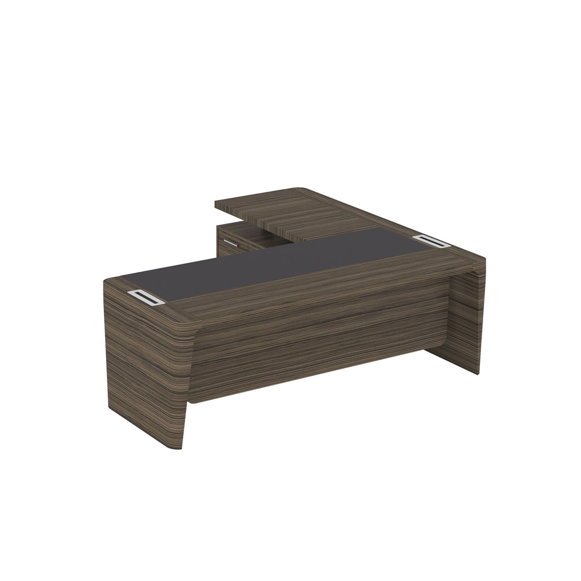 Стол для руководителя левый с кожаным бюваром, приставкой на большой тумбе и фронтальной панелью ПМ 176