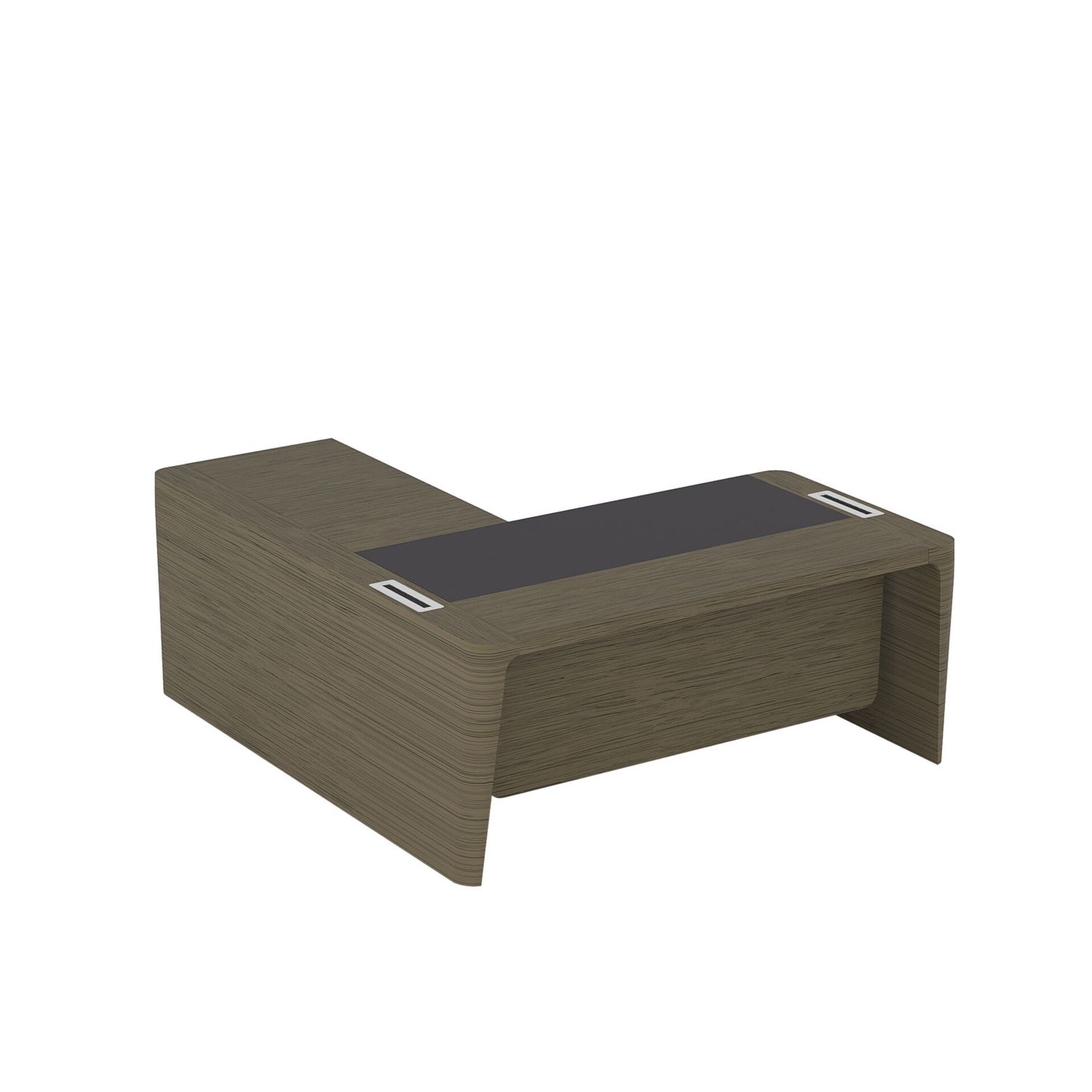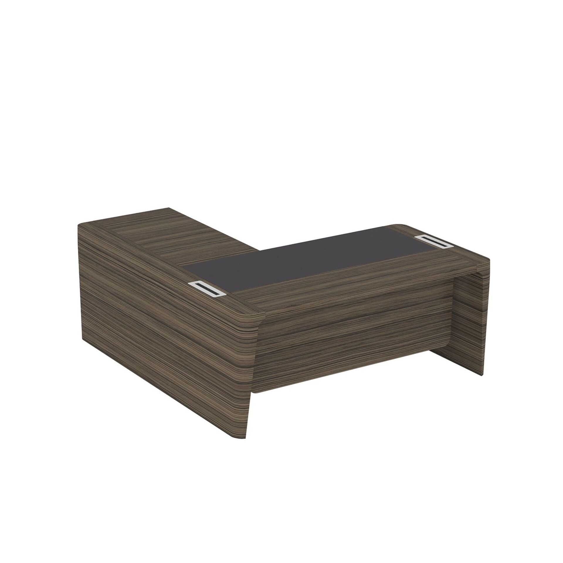 Стол для руководителя правый с кожаным бюваром, приставкой на малой тумбе и фронтальной панелью ПМ 155